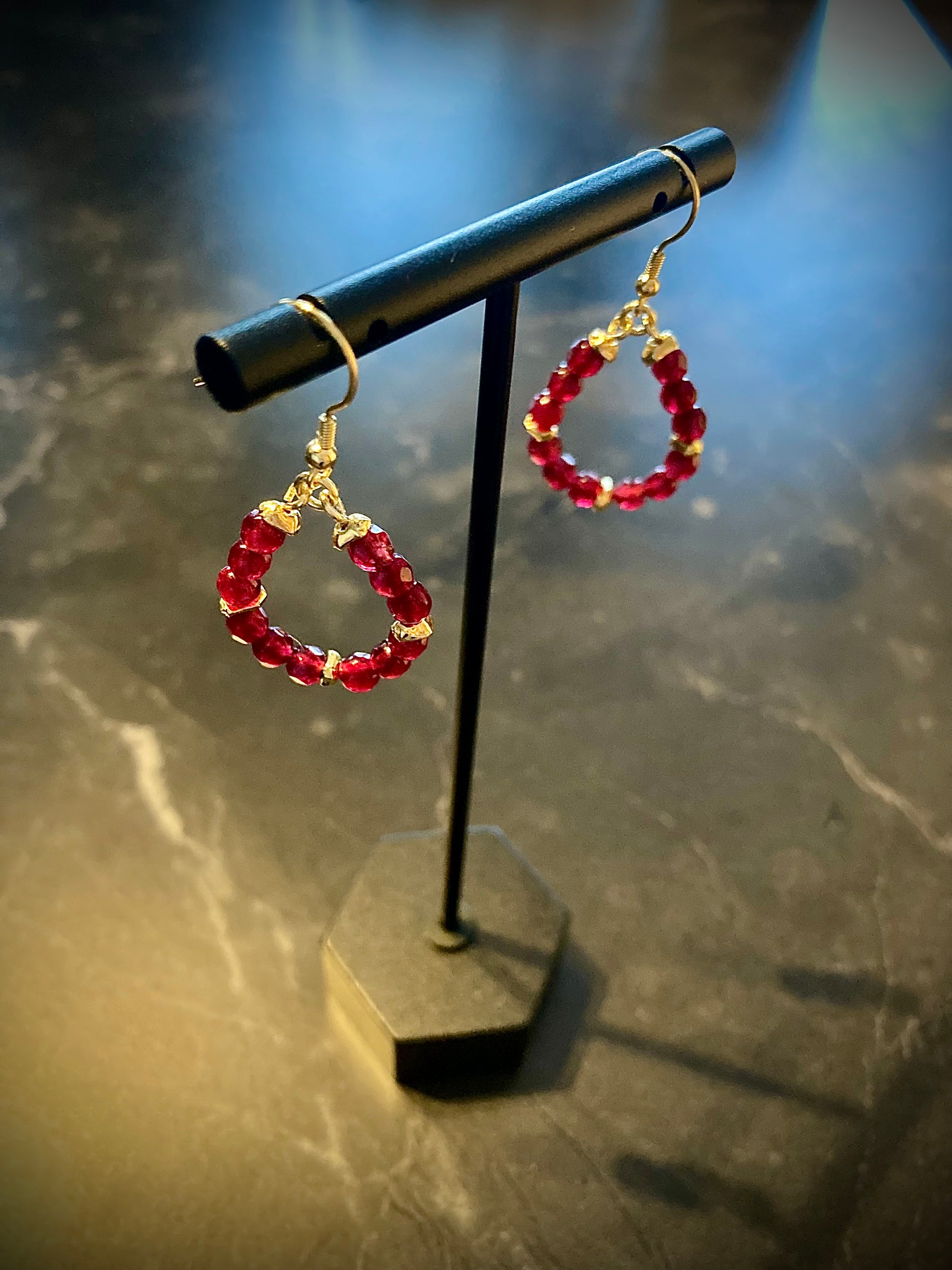 Fransk ørekrok Sølv: Rød Jade Holiday - Dråpe. Fra Iona Art & Jewelry.