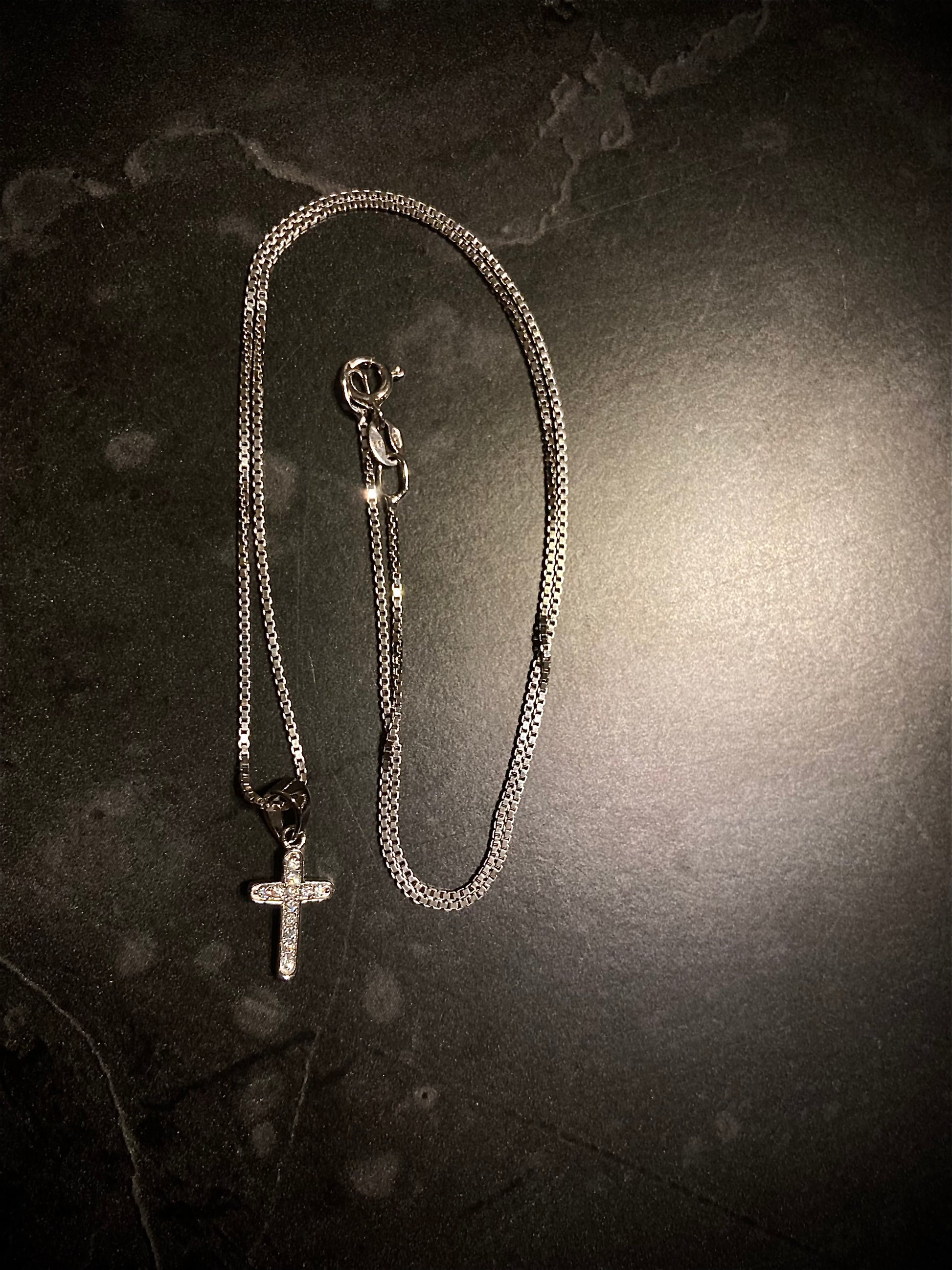 Veneziansk halskjede i ekte sølv (925) med et klassisk korsanheng prydet med glitrende zirkonia. Tidløst design. Enkelt og elegant. Fra Pan Jewelry.